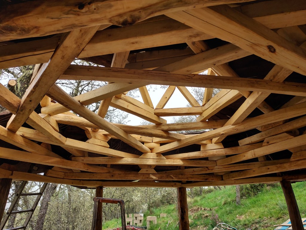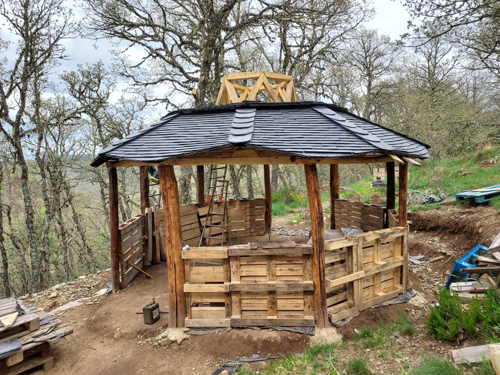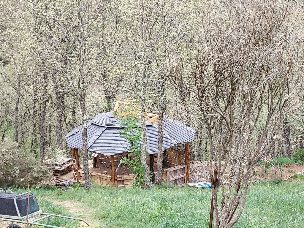 Luego, algunos pusimos rumbo a la casa de Jean Pierre y Lola, y Cristoff, que nos dieron una cálida bienvenida. Están bastante liados preparando un retiro de Búsqueda de la Visión que se celebrará a finales de mayo con la guía de un Hombre Medicina de Lakota (Vernon Foster), ultimando el recinto donde harán el fuego sagrado, construido con geometría sagrada (como Gaudí).